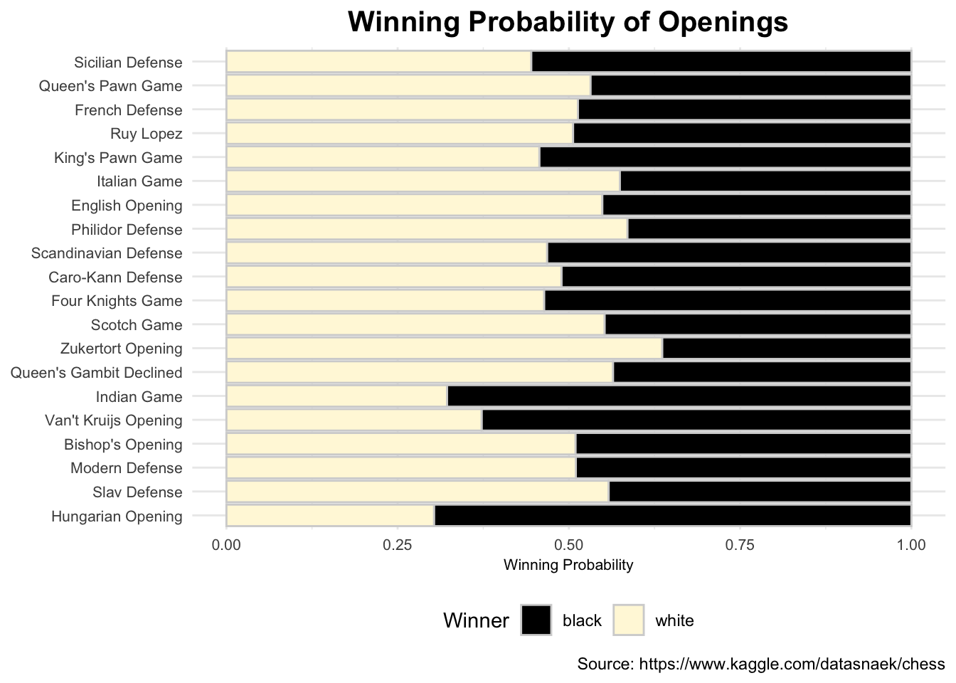 Moreover, Zukertort Opening had the highet winning probability (approximately 68%) against Black.